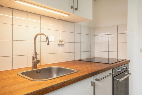 - De portiekflat heeft een woonoppervlakte van 50 m² en beschikt over 2 kamers, waarvan 1 slaapkamer;
