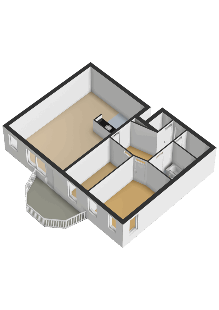 - De galerijflat heeft een woonoppervlakte van 81 m² en beschikt over 3 kamers, waarvan 2 slaapkamers;