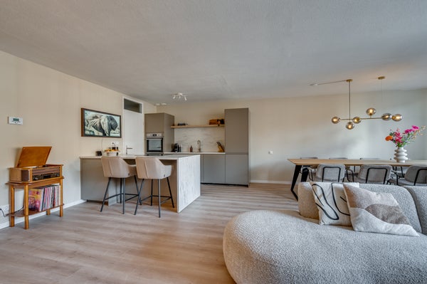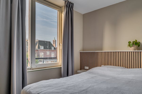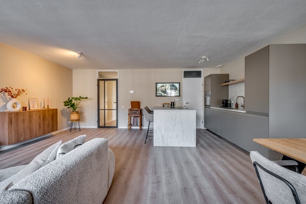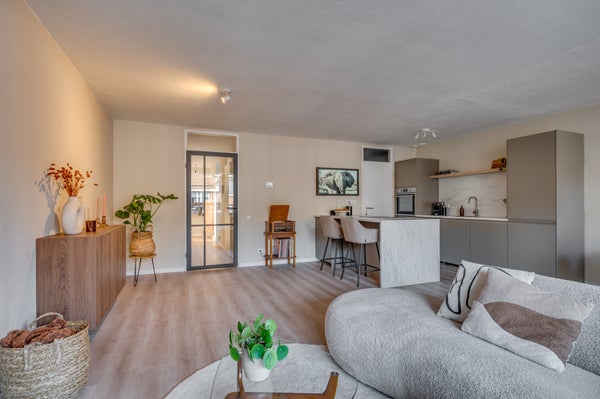 Dit gerenoveerde appartement in het centrum van Venlo biedt comfort en luxe. Gelegen op de tweede verdieping van ‘Residence Festina Lente’, is het instapklaar en beschikt over een ruime woonkamer van ca. 40 m2 met access naar een overdekt balkon van ca. 6 m2 en een moderne keuken met kookeiland. De hal leidt naar een fraaie slaapkamer van ca. 14 m2 en een luxe badkamer met inloopdouche en vloerverwarming. Met een praktische bijkeuken en inpandige berging, is er ook extra opbergruimte in het souterrain. Het appartement is volledig geïsoleerd, heeft een eigen parkeerplaats op een afgesloten terrein en ligt op loopafstand van het centrum. De gebruiksoppervlakte bedraagt ca. 73 m2. Servicekosten zijn € 205,16 per maand.