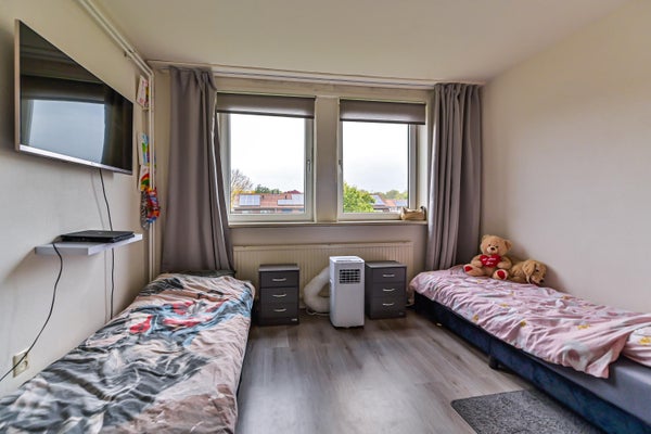- De portiekflat heeft een woonoppervlakte van 72 m² en beschikt over 5 kamers, waarvan 2 slaapkamers;