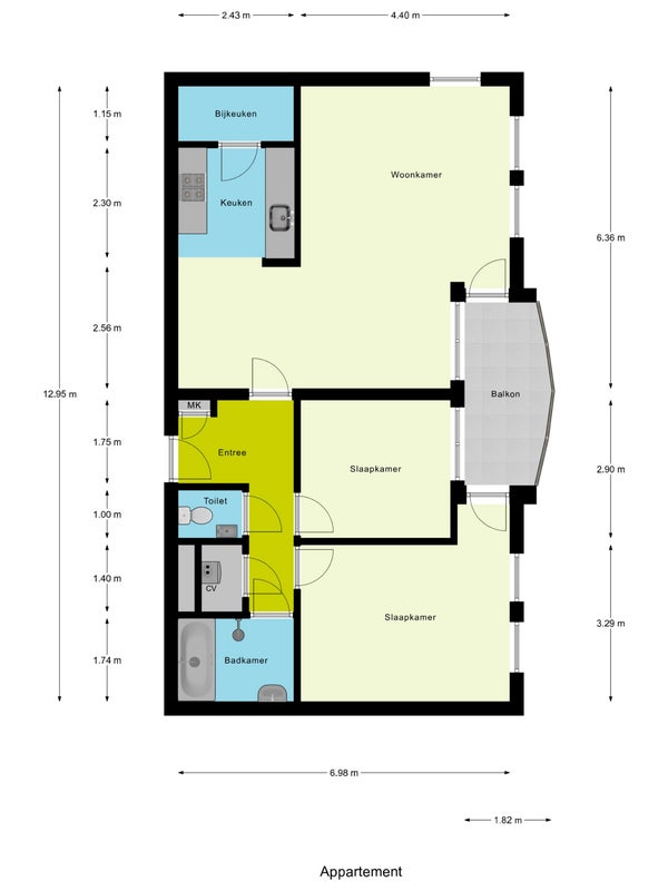 - De galerijflat heeft een woonoppervlakte van 84 m² en beschikt over 3 kamers, waarvan 2 slaapkamers;