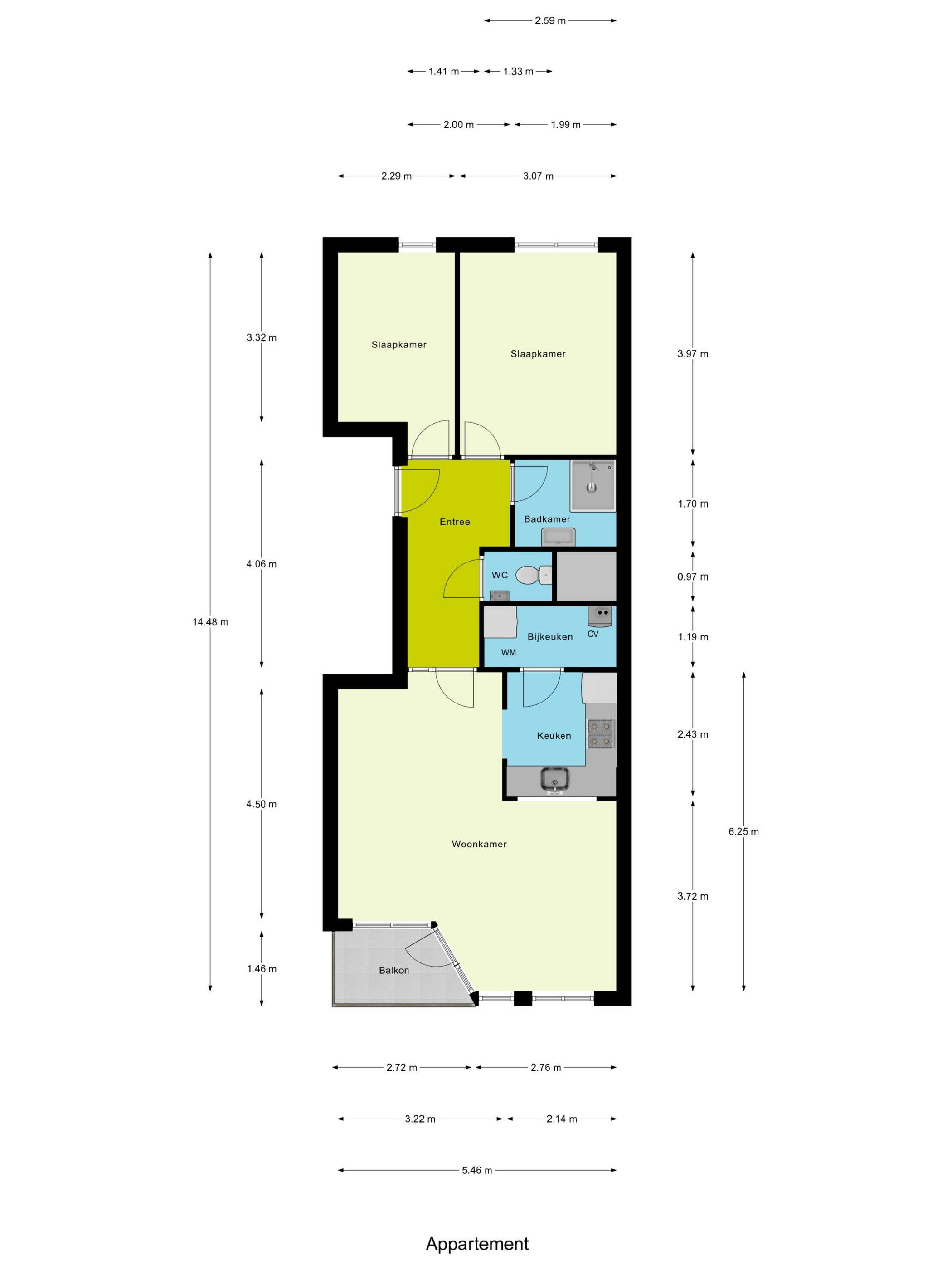 - De galerijflat heeft een woonoppervlakte van 67 m² en beschikt over 3 kamers, waarvan 2 slaapkamers;