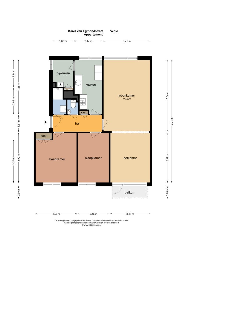 - De galerijflat heeft een woonoppervlakte van 82 m² en beschikt over 3 kamers, waarvan 2 slaapkamers;