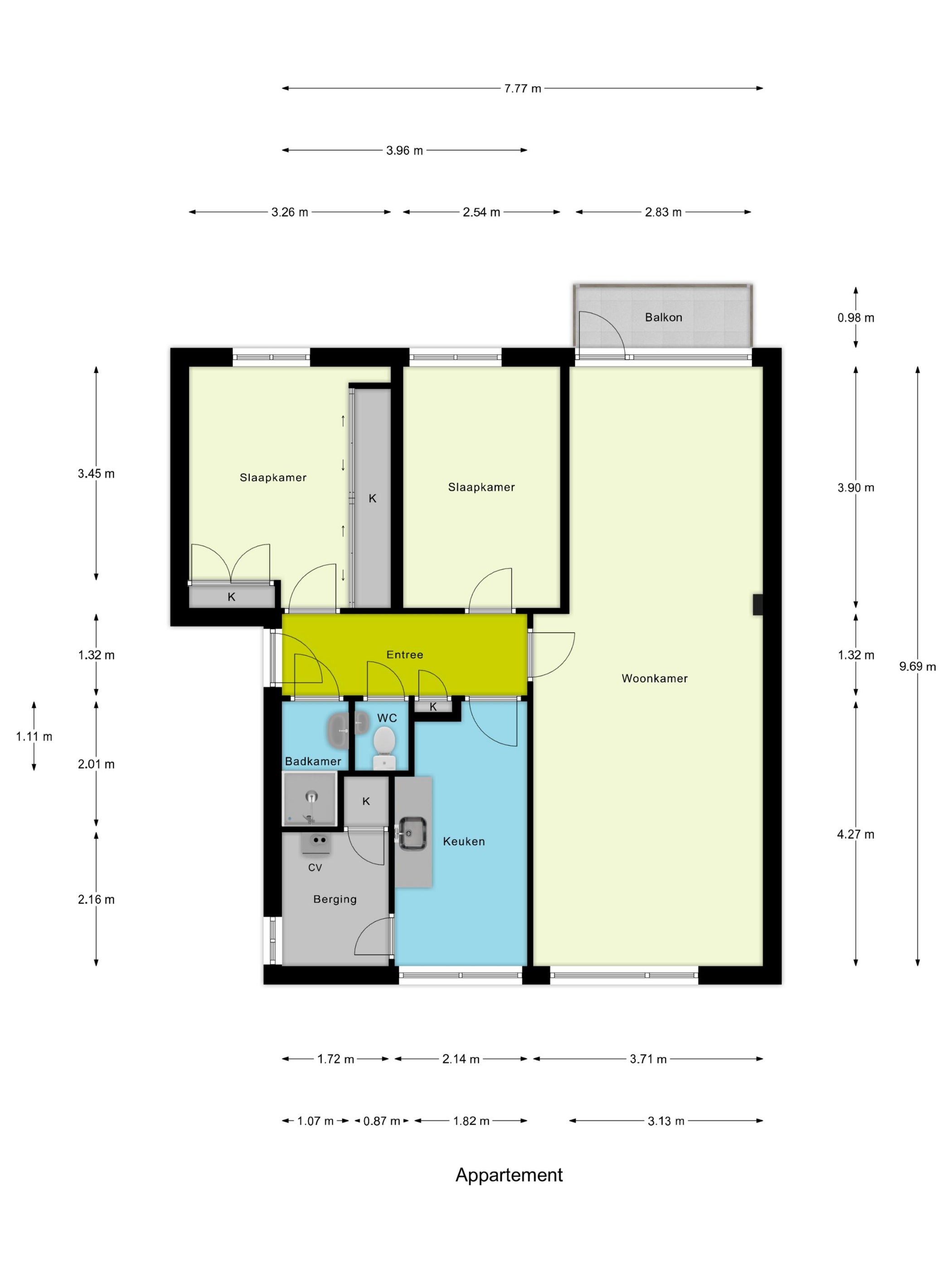- De galerijflat heeft een woonoppervlakte van 81 m² en beschikt over 3 kamers, waarvan 2 slaapkamers;