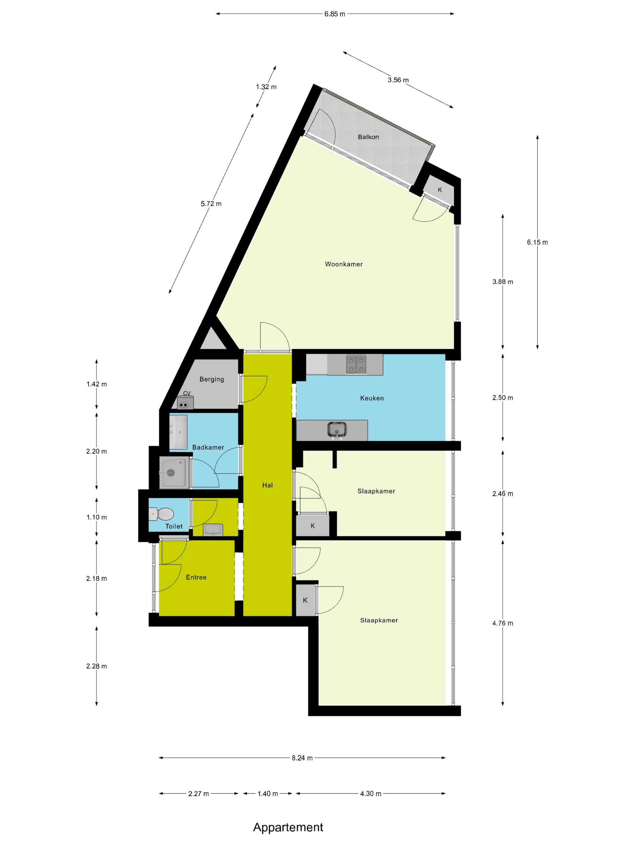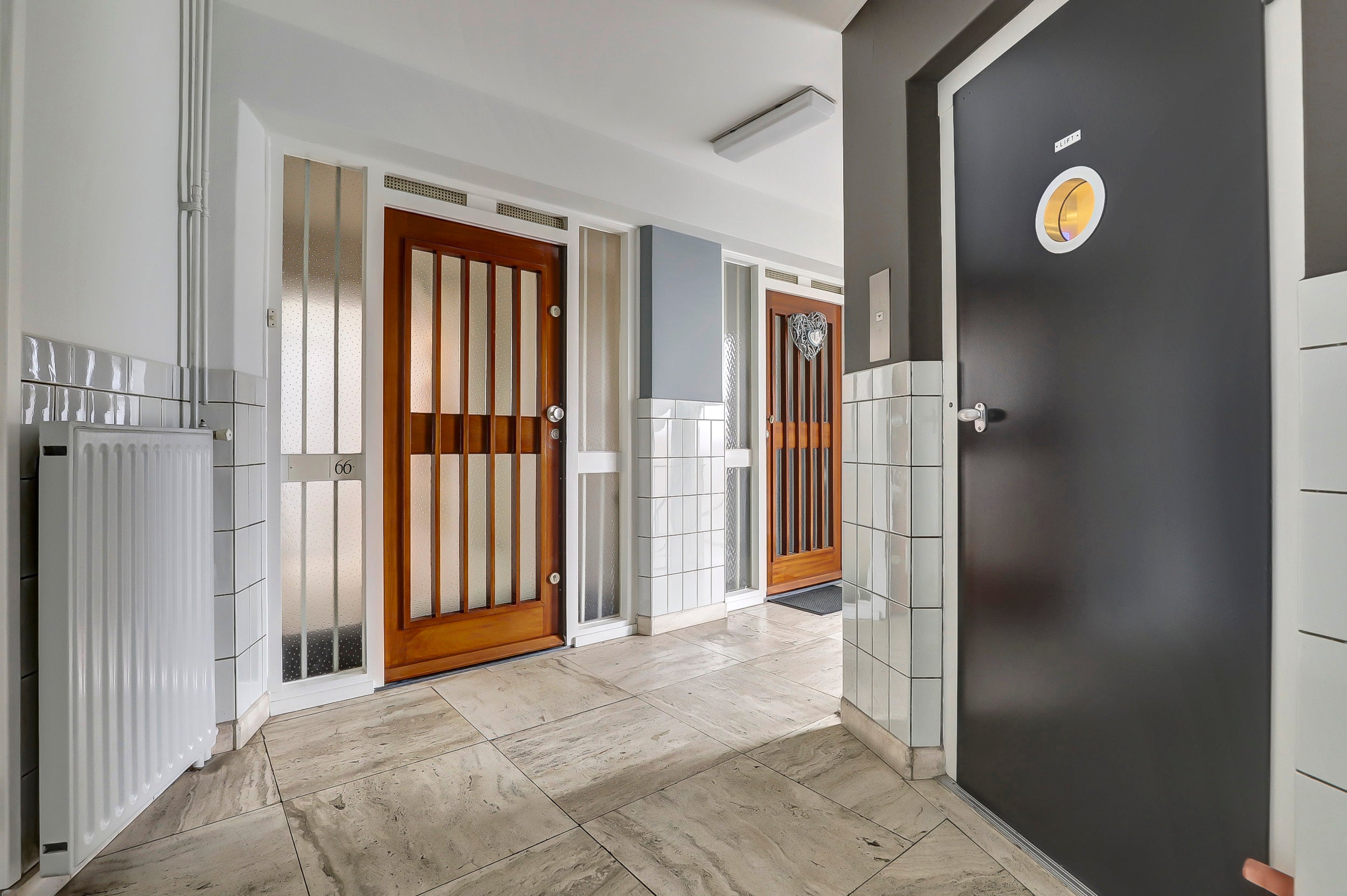 - De galerijflat heeft een woonoppervlakte van 102 m² en beschikt over 3 kamers, waarvan 2 slaapkamers;