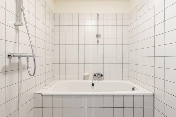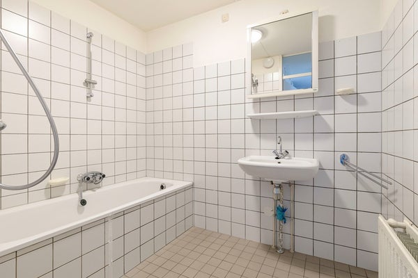 De hal geeft verder toegang tot de meterkast, de technische ruimte, de aparte toiletruimte, de badkamer en 2 slaapkamers. In de technische ruimte bevindt zich de combi CV-ketel (Nefit 2019) en de WTW-installatie. De deels betegelde toiletruimte is voorzien van een staand closet en fonteintje. De ruim opgezette badkamer heeft een ligbad, aparte douche en een wastafel. Beide slaapkamers zijn ruim van opzet, ca. 9m2 en 16m2 groot. Vanuit de masterbedroom is er, net als de woonkamer, toegang tot het balkon.