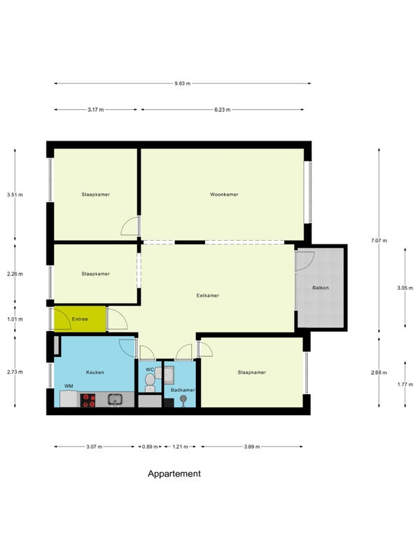 - De galerijflat heeft een woonoppervlakte van 92 m² en beschikt over 4 kamers, waarvan 3 slaapkamers;