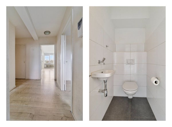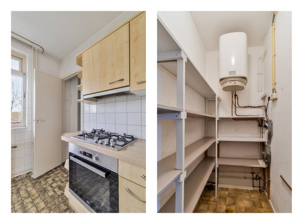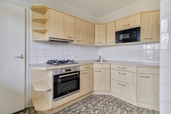 Via de galerij bereikt u de entree van het appartement. U komt binnen in de hal, vanwaar alle vertrekken toegankelijk zijn. De dichte keuken is voorzien van een keukenblok met diverse inbouwapparatuur, waaronder een 4-pits gasfornuis, oven en afzuigkap. Aansluitend bevindt zich de bijkeuken met witgoedaansluiting. Het toilet is separaat en voorzien van een zwevend closet en fontein. De nette badkamer beschikt over een inloopdouche, een wastafel met meubel en een radiator. Aan de achterzijde van de woning bevindt zich een slaapkamer van circa 12,5 m2. De woonkamer van circa 36,5 m² bestaat uit een woon- en eetgedeelte en beschikt over een bergkast. Vanuit de woonkamer is het balkon bereikbaar, waar u kunt genieten van veel privacy en een prettig uitzicht.
