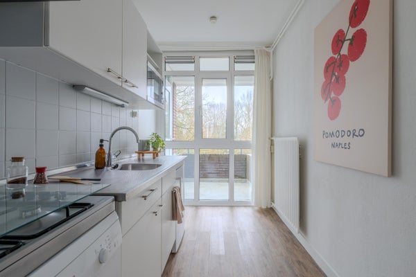 - De portiekwoning heeft een woonoppervlakte van 68 m² en beschikt over 5 kamers, waarvan 3 slaapkamers;