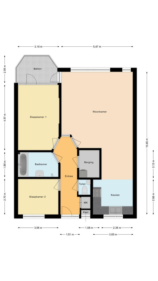 - De galerijflat heeft een woonoppervlakte van 91 m² en beschikt over 3 kamers, waarvan 2 slaapkamers;