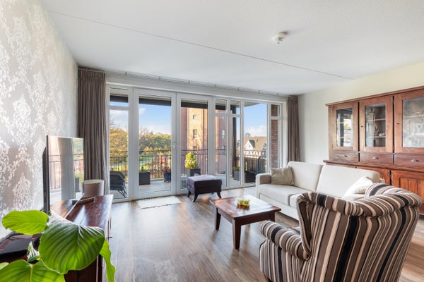 - De portiekflat heeft een woonoppervlakte van 111 m² en beschikt over 3 kamers, waarvan 2 slaapkamers;