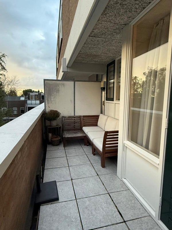 Het balkon is te betreden via de openslaande deuren. Je hebt hier vanaf begin van de middag zon tot laat in de avond.