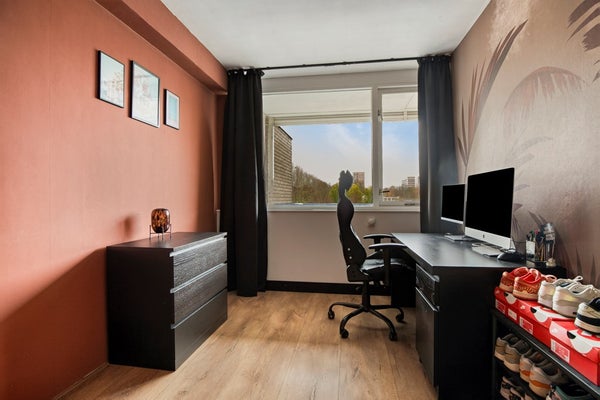 - De portiekflat heeft een woonoppervlakte van 106 m² en beschikt over 4 kamers, waarvan 3 slaapkamers;