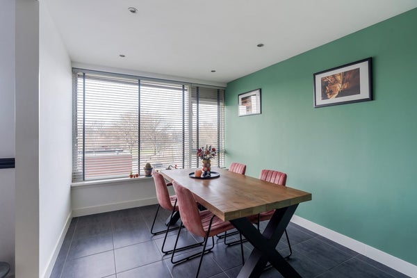De woonkamer is met recht het hart van de woning te noemen. Dankzij de slimme toevoeging van een extra (slaap)kamer is een bijzonder royale leefruimte ontstaan. Of u nu droomt van een riante loungehoek of een lange eettafel voor uitgebreide diners met vrienden: hier kan het allemaal. De nette plavuizenvloer met comfortabele vloerverwarming loopt naadloos door vanuit de hal, wat zorgt voor een rustige en luxe uitstraling.