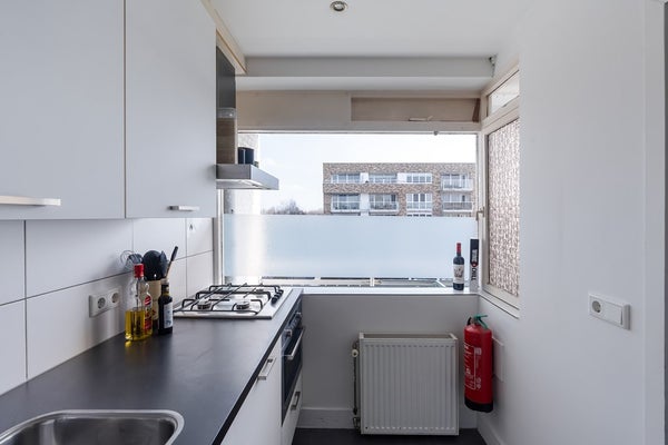 Vanuit de woonkamer stap je zo het zonnige balkon op. Het is het perfecte verlengstuk van je woonkamer; een heerlijke plek voor je eerste kop koffie in de ochtendzon of een koud drankje na je werk. Met wat leuke planten en een gezellig zitje maak je hier in no-time je eigen relaxplek.
