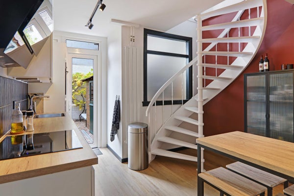 - De beneden + bovenwoning heeft een woonoppervlakte van 104 m² en beschikt over 5 kamers, waarvan 3 slaapkamers;