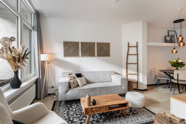 - De benedenwoning heeft een woonoppervlakte van 52 m² en beschikt over 2 kamers, waarvan 1 slaapkamer;