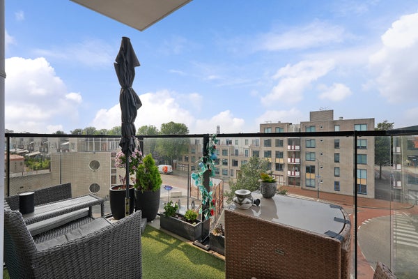 - De portiekflat heeft een woonoppervlakte van 84 m² en beschikt over 3 kamers, waarvan 2 slaapkamers;