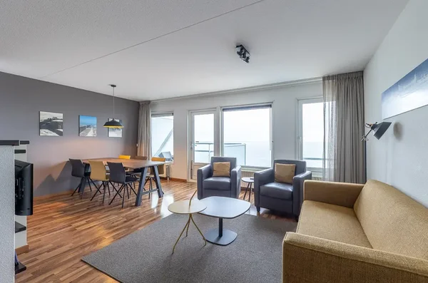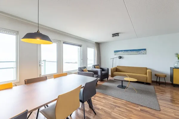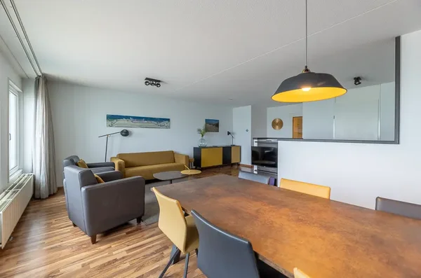 Dit sfeervolle appartement in complex "De Wielingen" biedt zowel permanent als recreatief wonen met een prachtig uitzicht op de Westerschelde, het strand en de boulevard. Gelegen op de vijfde verdieping, heeft het een woonoppervlakte van 82 m² en is volledig gemeubileerd. Bij binnenkomst vind je een ruime hal die toegang biedt tot een badkamer met douche en dubbele wastafel, een separaat toilet en een lichte woonkamer met open keuken. De woonkamer geeft toegang tot een zonnig balkon op het zuidwesten. Aan de achterzijde bevinden zich twee slaapkamers, inclusief een royale masterbedroom en een tweede met stapelbed. In de onderbouw is er een gemeenschappelijke fietsenberging en extra opslagruimte. De VvE-bijdrage bedraagt € 293,14, met verhoging bij verhuur. Bouwjaar is 2001, en het appartement heeft energielabel A++.