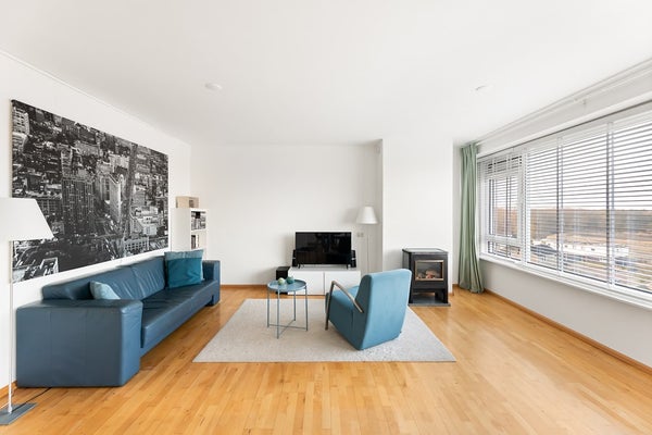 Hal met toegang tot de verschillende vertrekken. Aan de galerijzijde bevinden zich de twee slaapkamers en de nette keuken. Verder een keurig toilet en badkamer met douche, wastafel en witgoedaansluiting. De lichte en royale woonkamer bevindt zich aan de achterzijde en heeft mooi zicht richting de duinen en toegang tot het op het westen gelegen balkon middels een schuifpui. Hier kan je heerlijk genieten van prachtige zonsondergangen.