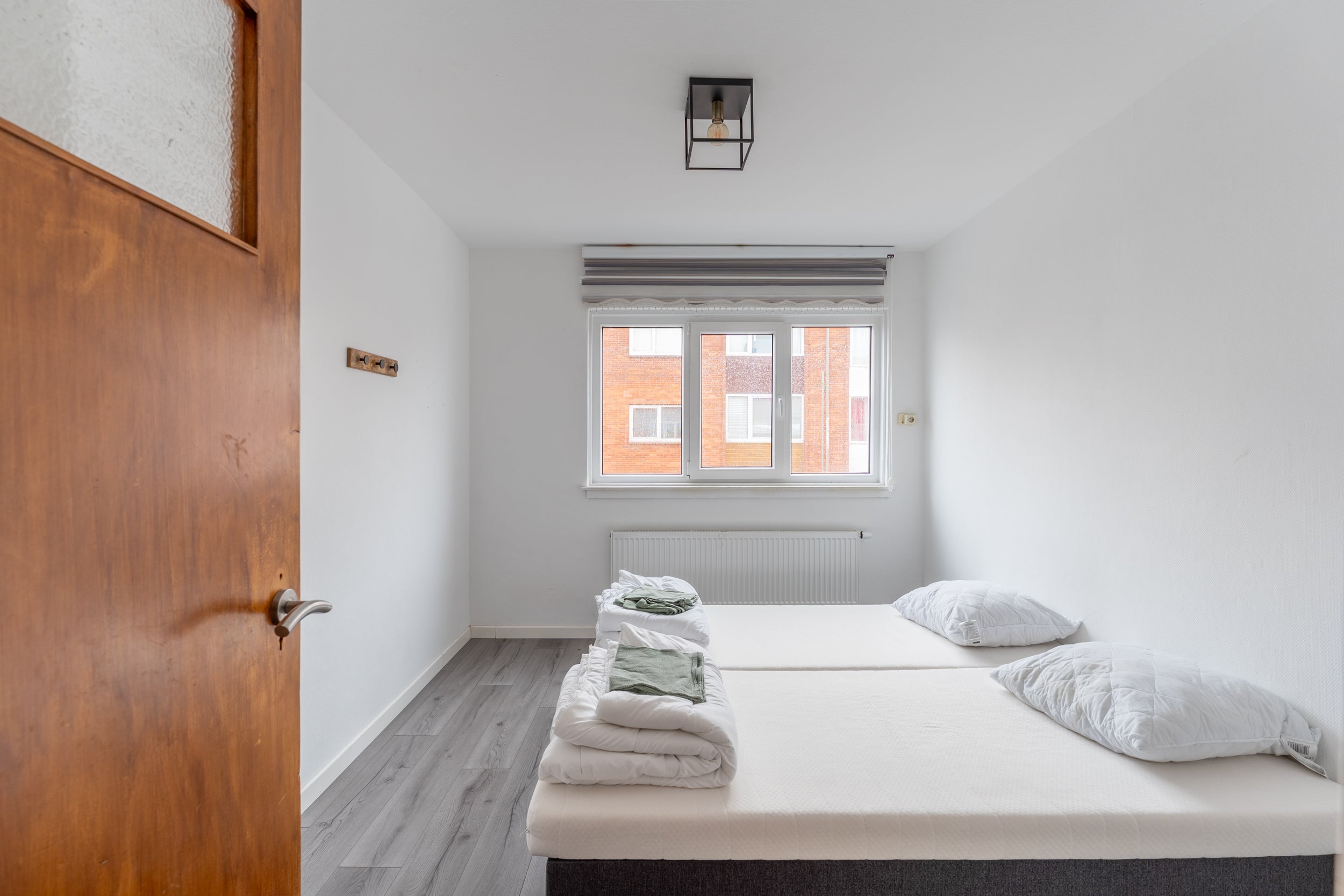 Dit 3-kamer appartement op de tweede verdieping is perfect voor starters en kleine huishoudens. Met een woonoppervlakte van 57 m² biedt het een lichte woonkamer van 16 m² en twee ruime slaapkamers. De moderne keuken is voorzien van een gaskookplaat, afzuigkap, koelkast, oven en inbouwverlichting, en vanuit hier heeft u toegang tot een overdekt balkon. De badkamer is gemoderniseerd met een inloopdouche en wastafel. De woning heeft eigentijdse laminaatvloeren en vaste kasten. Verwarming en warm water zijn geregeld via een HR combi ketel. Het appartement beschikt verder over een eigen stenen fietsenberging en er is parkeergelegenheid in de rustige straat. De maandelijkse VVE-bijdrage bedraagt €160, en het appartement is gelegen in een woonwijk nabij dagelijkse voorzieningen.