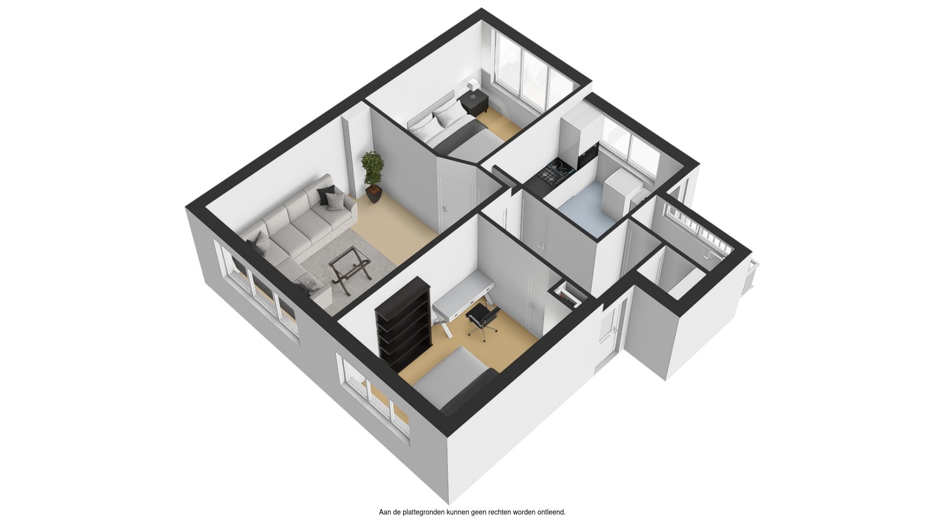 - De galerijflat heeft een woonoppervlakte van 57 m² en beschikt over 3 kamers, waarvan 2 slaapkamers;