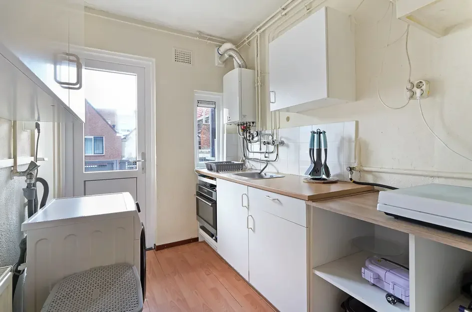 Dit appartement biedt betaalbaar wonen op korte loopafstand van de Boulevard, zee, strand en het centrum met diverse winkels en uitgaansgelegenheden. Gelegen op de 2e verdieping, beschikt het over twee slaapkamers en een zonnig balkon. Bij binnenkomst via het afgesloten portiek vindt u een ruime hal die toegang biedt tot de eerste slaapkamer aan de voorzijde, het toilet, en de eenvoudige keuken met toegang naar het balkon op het zuidwesten. Daarnaast is er een lichte woonkamer en een tweede slaapkamer aan de achterzijde. Het appartement is voorzien van kunststof kozijnen met dubbel glas en heeft centrale verwarming (2019). Op de begane grond is er een externe berging. De VVE-bijdrage bedraagt € 130,- per maand.