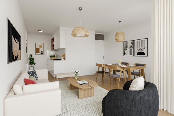 • De portiekflat heeft een woonoppervlakte van 52 m² en beschikt over 2 kamers, waarvan 1 slaapkamer;