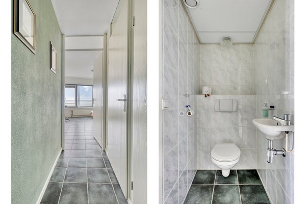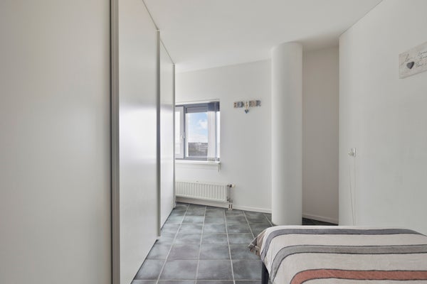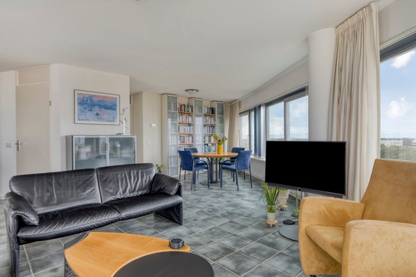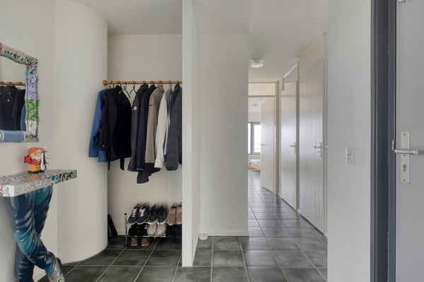 - De galerijflat heeft een woonoppervlakte van 110 m² en beschikt over 3 kamers, waarvan 2 slaapkamers;