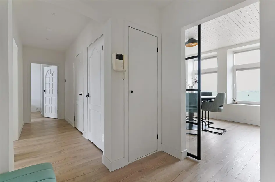 Aan de zonnige, zuidgerichte Boulevard van Vlissingen ligt het kleinschalige gebouw 'Admiraal Banckert'. Dit modern, gasloze 4-kamer appartement op de 2e verdieping biedt een prachtig uitzicht over de zee en Zeeuws-Vlaanderen. Het appartement is in 2023 volledig gerenoveerd en beschikt over een luxe keuken, nieuwe badkamer, en drie slaapkamers, elk met wastafel. De woonkamer is ongeveer 9 meter breed, waardoor je optimaal geniet van het uitzicht. De gemeenschappelijke entree is verzorgd met een trappenhuis. De verwarmingen zijn infraroodpanelen en het appartement heeft nieuwe isolatie met kunststof kozijnen. Optioneel kan er een garagebox van ca. 18,5 m² aan de Gasthuisstraat worden gekocht.
