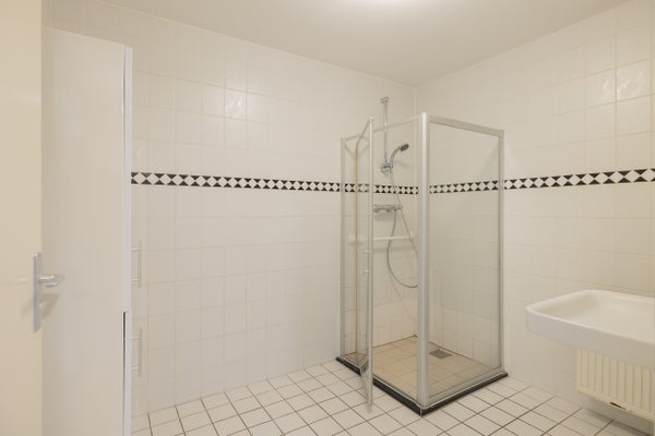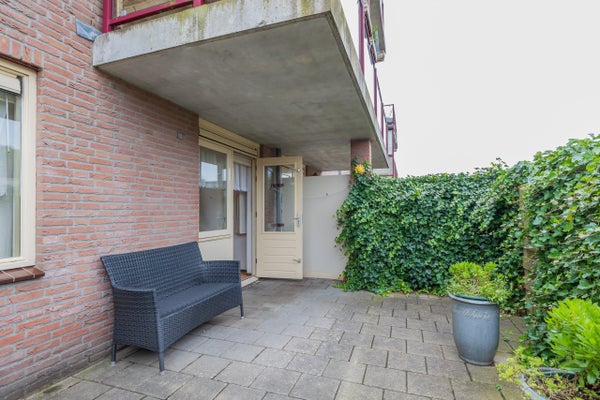 Aan de achterzijde van het appartement bevinden zich twee goed bemeten slaapkamers. De kleine slaapkamer biedt toegang tot het zonnige terras, waar u op mooie dagen heerlijk buiten kunt zitten en ’s middags geniet van de zon. Daarnaast beschikt het appartement over een ruime badkamer met ligbad, wastafel en douche, een handige bijkeuken met aansluitingen voor wasapparatuur en een separaat gastentoilet.