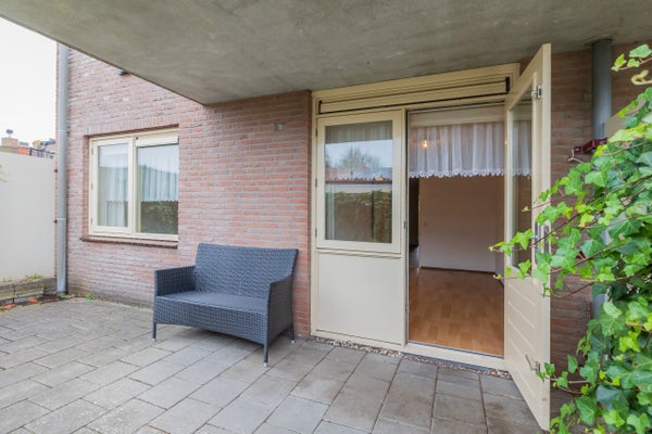 Entree, hal, toilet met fontein, lichte woonkamer met deur naar de voortuin en open keuken v.v. diverse inbouwapparatuur, stookruimte met c.v. opstelling en was/droger aansluiting, 2 slaapkamers aan de achterzijde waarvan één toegang heeft tot de achtertuin, badkamer v.v. inloopdouche en wastafel.