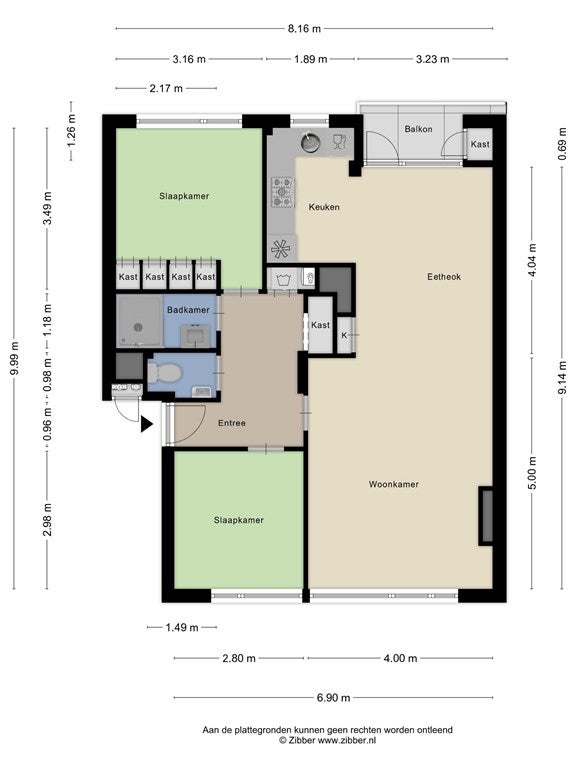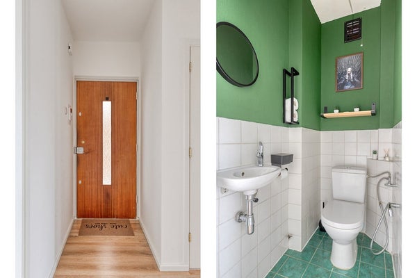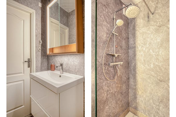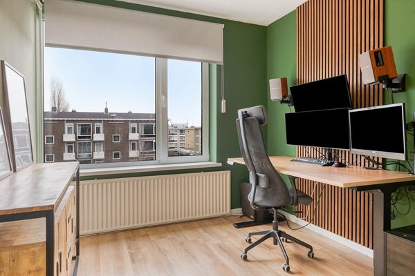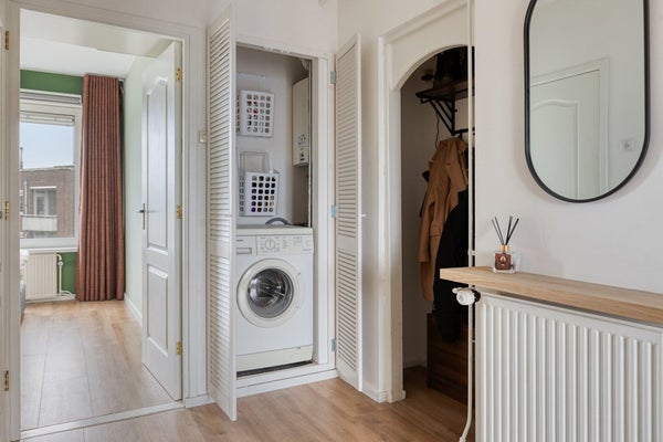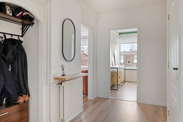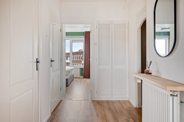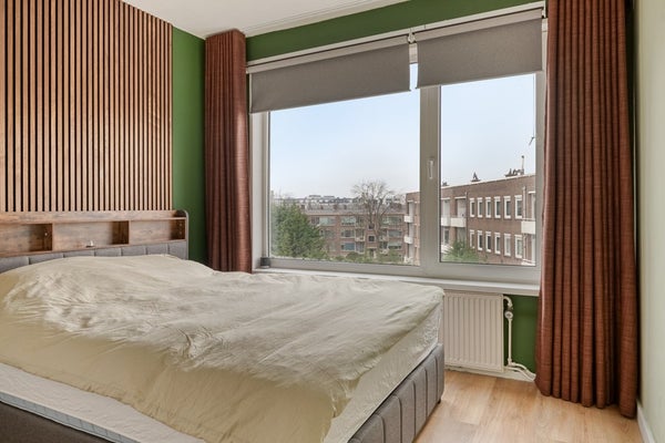 Het appartement beschikt over twee goed bemeten slaapkamers. De hoofdslaapkamer is ruim (11m2), voorzien van vaste kasten en ligt aan de achterzijde. De tweede slaapkamer is perfect als kinder-, werk- of logeerkamer. De badkamer is functioneel ingericht en voorzien van douche en wastafel. Het toilet is separaat – comfortabel en praktisch.