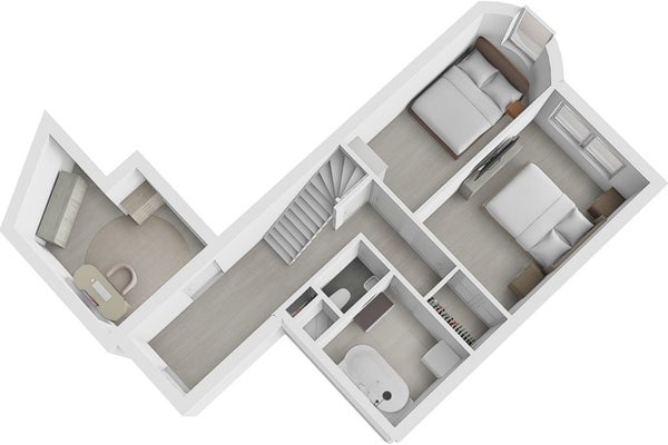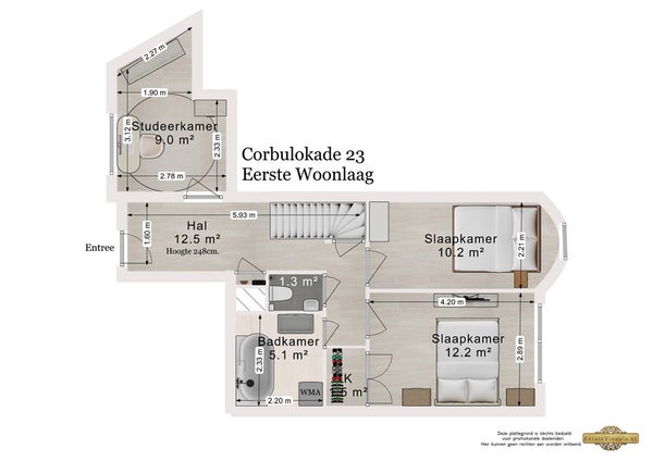 Gelegen aan de voorzijde. Deze kamer heeft een speelse vorm.
