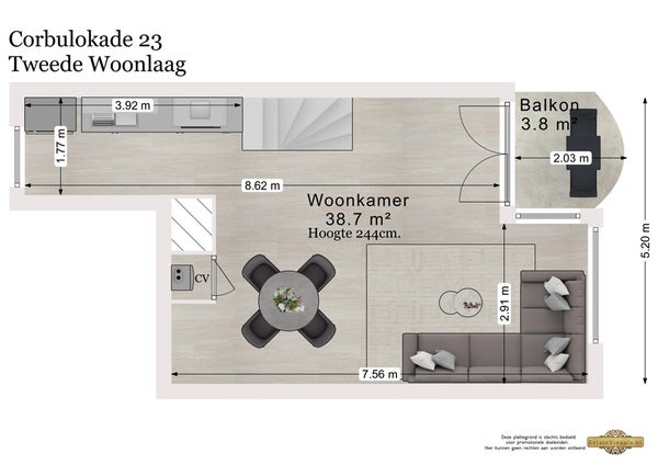 - De maisonnette heeft een woonoppervlakte van 94 m² en beschikt over 4 kamers, waarvan 3 slaapkamers;
