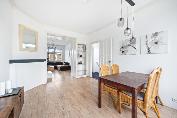 - De portiekwoning heeft een woonoppervlakte van 75 m² en beschikt over 3 kamers, waarvan 2 slaapkamers;