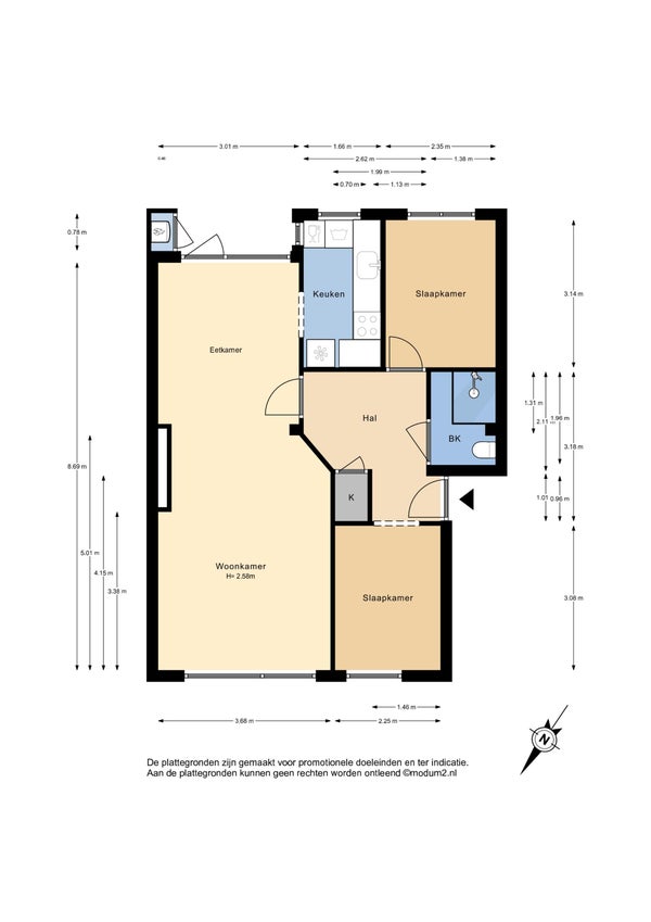 - De benedenwoning heeft een woonoppervlakte van 61 m² en beschikt over 4 kamers, waarvan 2 slaapkamers;