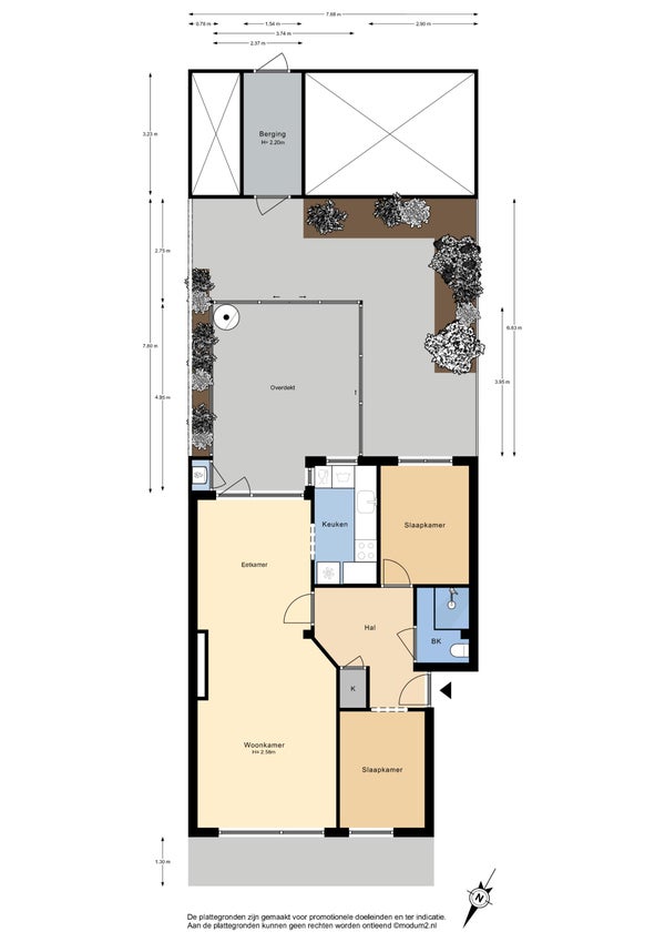 - Aanwezig (49 m², gelegen op het zuidoosten)