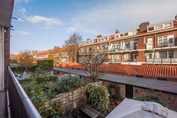 Het balkon is een fijne plek om even buiten te zitten en is bovendien praktisch ingericht met twee vaste kasten. Eén van deze kasten is voorzien van een wasmachine- en drogeraansluiting.