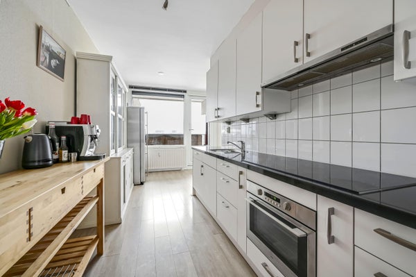 - De galerijflat heeft een woonoppervlakte van 113 m² en beschikt over 3 kamers, waarvan 2 slaapkamers;