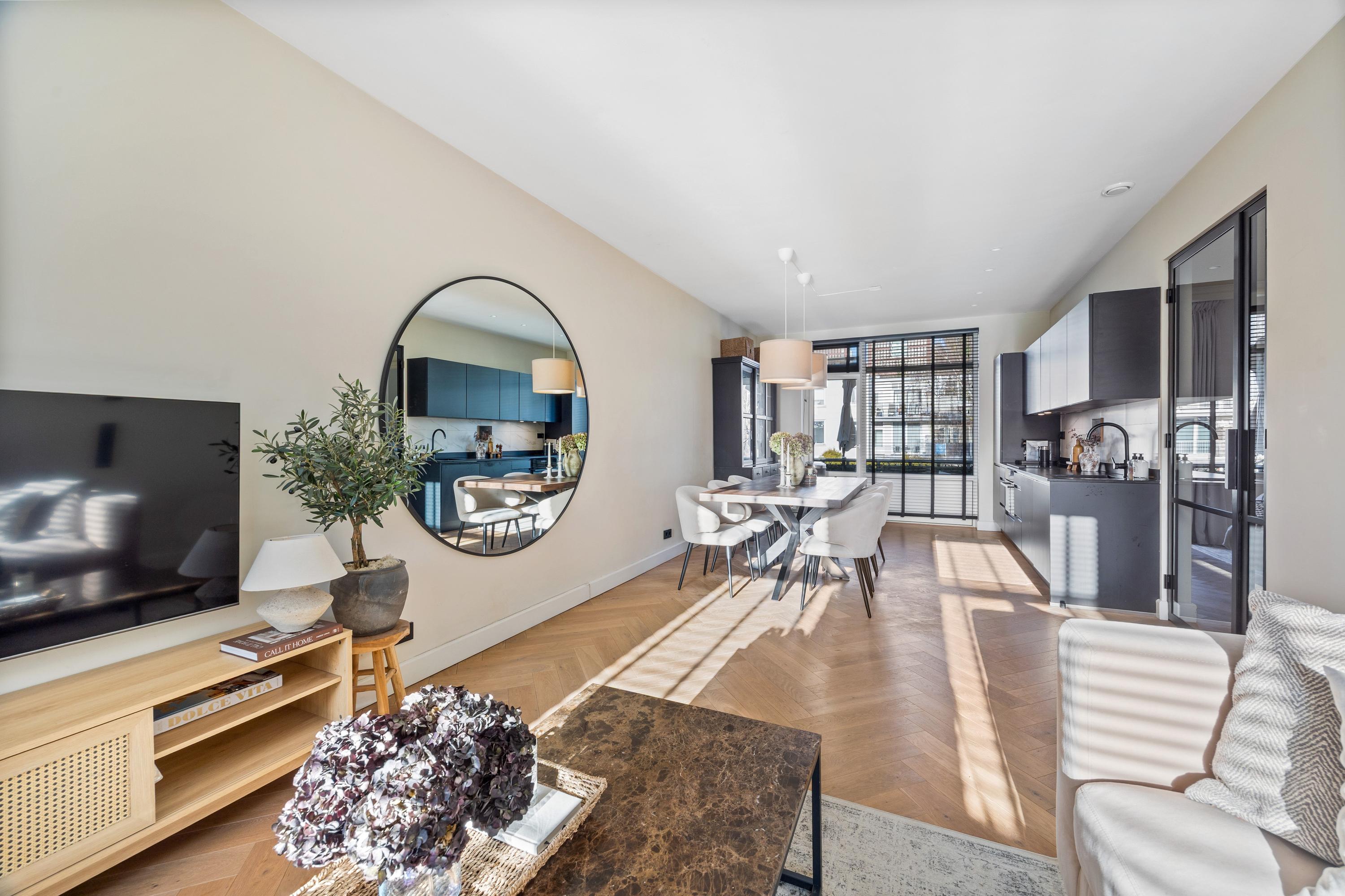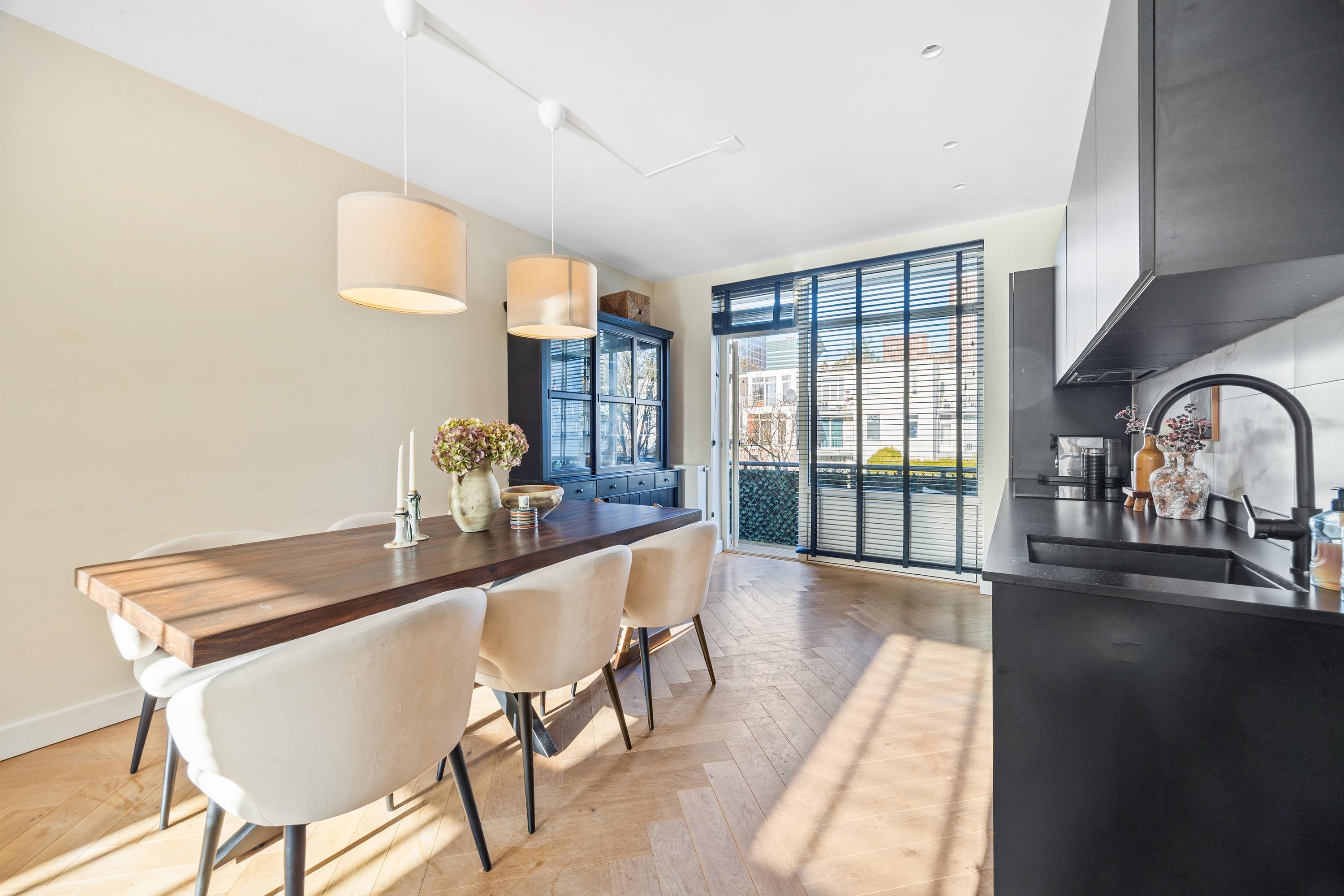 Dit stijlvolle en instapklare appartement van ca. 70 m² is hoogwaardig gerenoveerd en biedt comfortabele woonruimte. Gelegen in de rustige Van Heurnstraat, heeft het appartement veel natuurlijk licht en is het centraal gelegen nabij station Laan van NOI en het levendige Voorburg. De indeling omvat een ruime hal die leidt naar een lichte woon- en eetkamer met een moderne zwarte keuken, uitgerust met AEG-apparatuur. Er zijn twee slaapkamers, waaronder een royale met een luxe walk-in closet, directe toegang tot het zonnige balkon, en een strakke badkamer met inloopdouche en wastafelmeubel. Buiten geniet je van de gemeenschappelijke tuin met speeltuin, speciaal voor bewoners. Met €75,- maandelijkse VvE-bijdrage en een goede staat van onderhoud, is dit appartement een unieke kans.