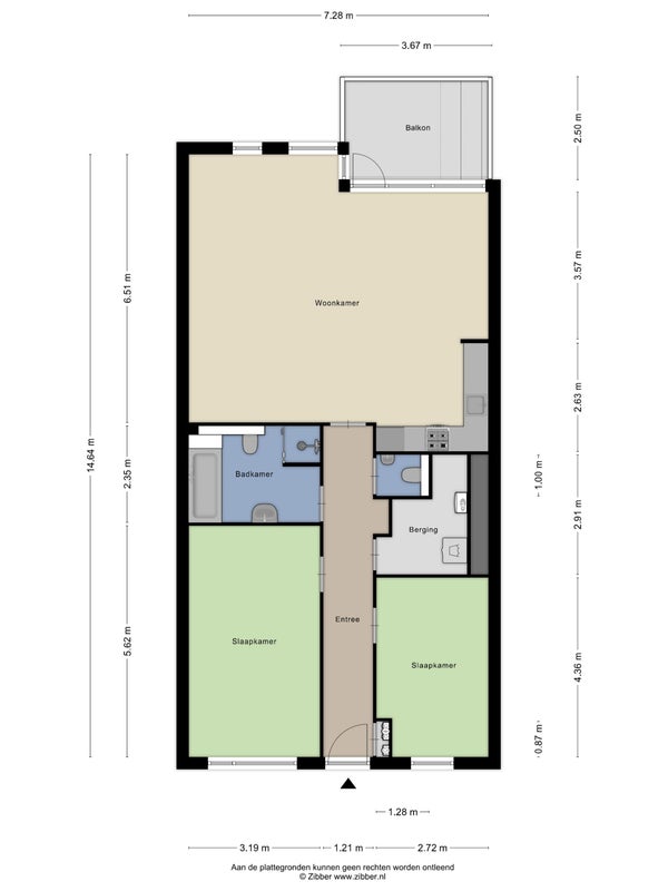 • De galerijflat heeft een woonoppervlakte van 102 m² en beschikt over 3 kamers, waarvan 2 slaapkamers;