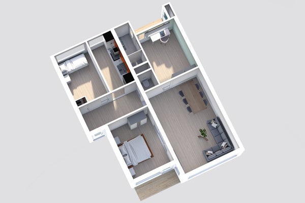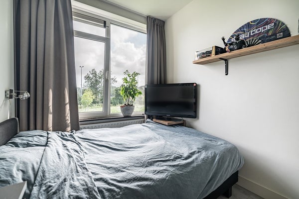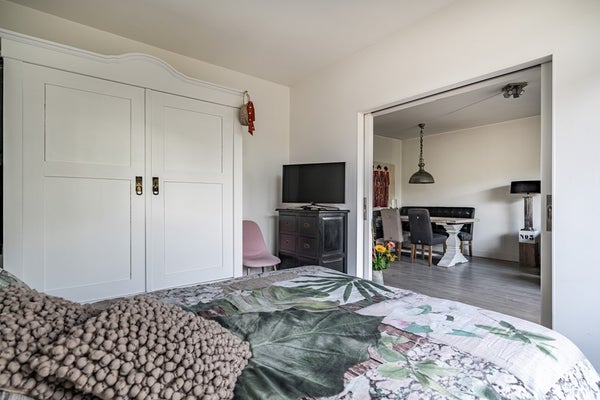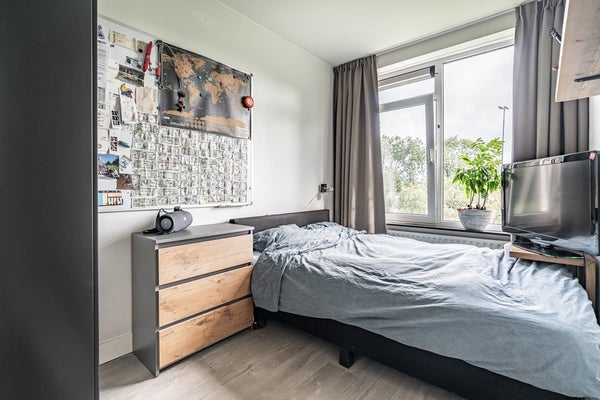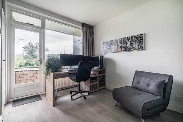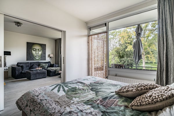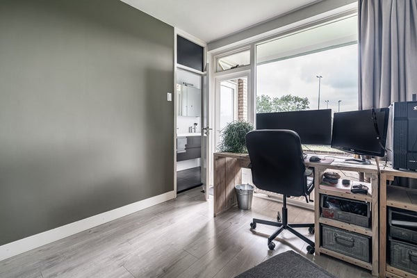 Het appartement beschikt over drie goed bemeten slaapkamers. De slaapkamer aan de achterzijde biedt directe toegang tot zowel het balkon aan de achterzijde als de badkamer. De andere kamers zijn perfect in te richten als werk-, logeer- of kinderkamer.