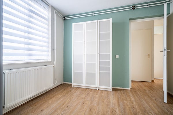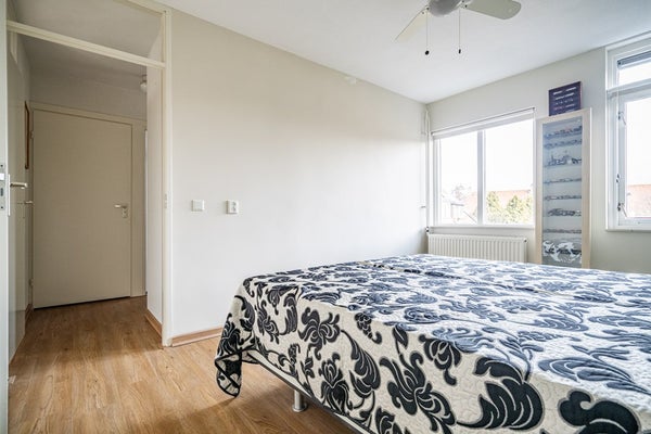 Via de centrale hal bereikt u de overige ruimtes van het appartement. Er zijn twee ruime slaapkamers, ideaal als hoofdslaapkamer en bijvoorbeeld werk- of logeerkamer. Het separate toilet is praktisch gesitueerd.