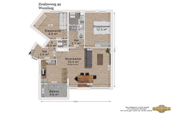 - De galerijflat heeft een woonoppervlakte van 71 m² en beschikt over 3 kamers, waarvan 2 slaapkamers;