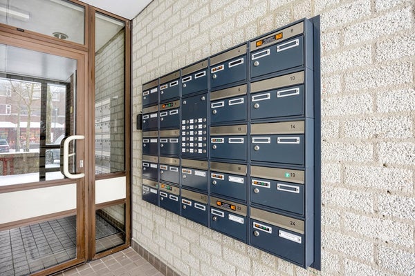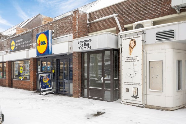 De entreehal van het appartementencomplex ligt aan het pleintje De Bus. In deze hal bevinden zich de brievenbussen, de bellen en de intercom. Er is een trap naar de hal op de eerste verdieping (met een traplift) waar de appartementen aan grenzen.