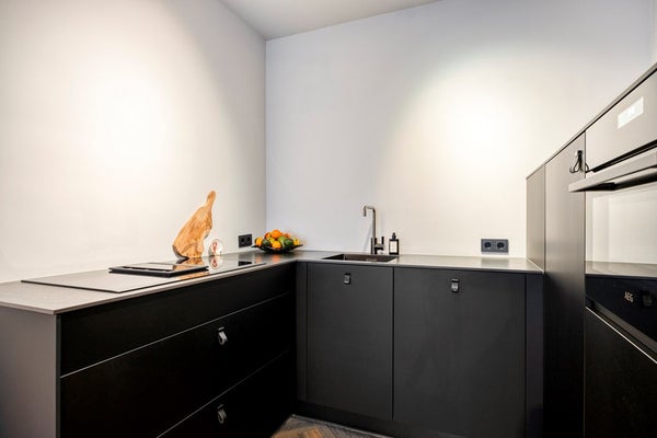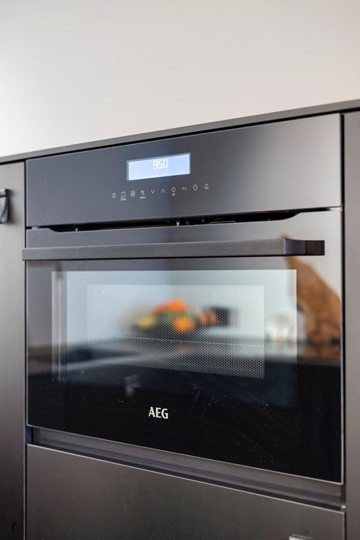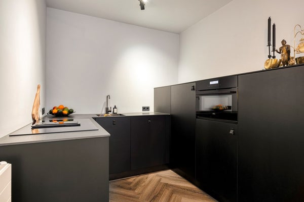 De U-vormige en recent (2021) aangelegde keuken beschikt over diverse inbouwapparatuur zoals een vaatwasser, een koelkast met vriezer, inductiekookplaat met geïntegreerd afzuigsysteem en een combi magnetron/oven. Er zijn voldoende kasten en lades dus aan bergruimte geen gebrek.