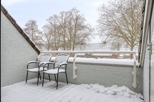 Het balkon ligt aan een rustig pleintje en onder de schuinte van het dak bevindt zich nog een ruime berging.