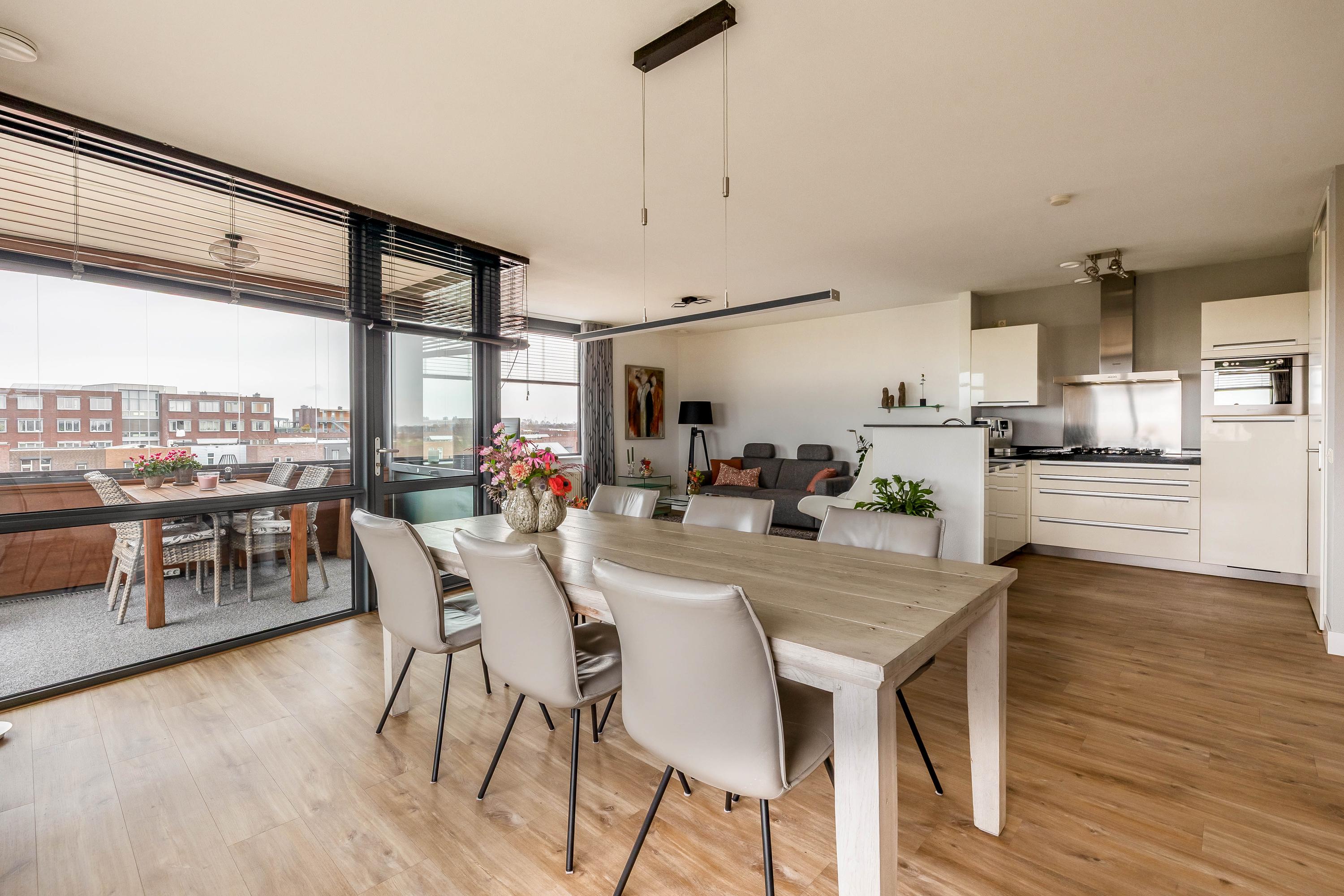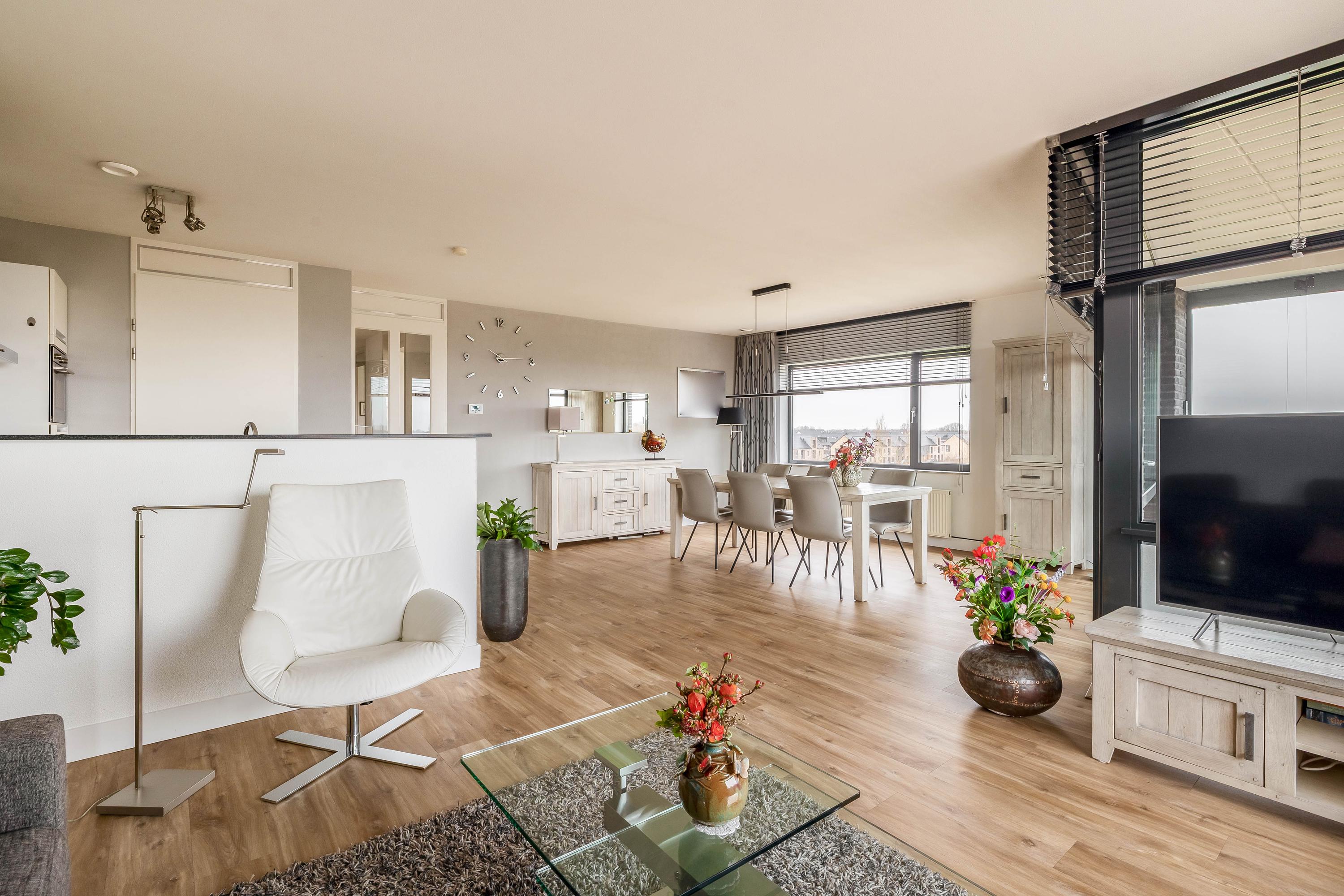 Dit ruime appartement op de derde verdieping biedt een prachtig uitzicht over het omliggende landschap, zowel vanuit de woonkamer als de slaapkamers. Het appartement beschikt over twee ruime slaapkamers, een nette keuken met een aparte technische ruimte, een grote badkamer met ligbad en douchemogelijkheid, en twee toiletten. De lichte woonkamer leidt naar een loggia en een open balkon, perfect om van het buitenleven te genieten. Er is een eigen berging naast de voordeur en een parkeerplaats in de ondergrondse garage. Gelegen in de wijk Landgoed Driessen, vlakbij uitvalswegen en het centrum van Waalwijk, biedt dit appartement een fijne woonplek met een actieve Vereniging van Eigenaars voor goed onderhoud.