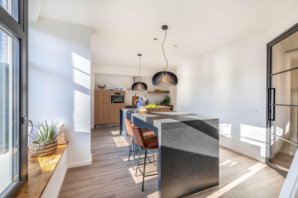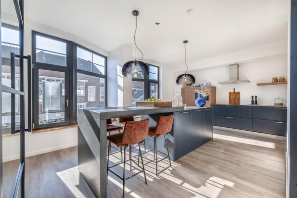 Deze bijzondere bovenwoning in Waalwijk is volledig gemoderniseerd en instapklaar. Vanuit de hal kom je binnen in een sfeervolle woonkamer met dubbele tuindeuren die toegang geven tot een riant dakterras van ca. 52 m². De woonkeuken, voorzien van een bar en alle benodigde apparatuur, nodigt uit tot gezellige avonden met vrienden en familie. Op de eerste verdieping vind je twee slaapkamers, waaronder een met een elektrisch bedienbaar dakraam, en een fraaie badkamer. De woning is uitgerust met vloerverwarming, kunststof kozijnen en triple glas, wat bijdraagt aan het energielabel A+. Met eigen parkeerplaats aan de achterzijde en gelegen in het hart van de winkelstraat, is dit een perfecte plek om te wonen.